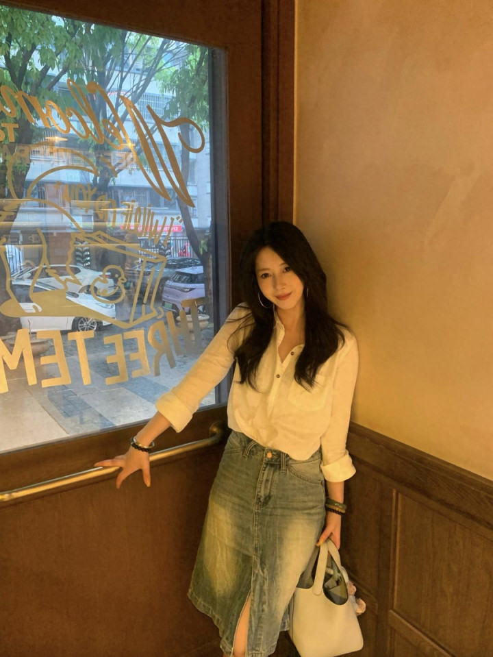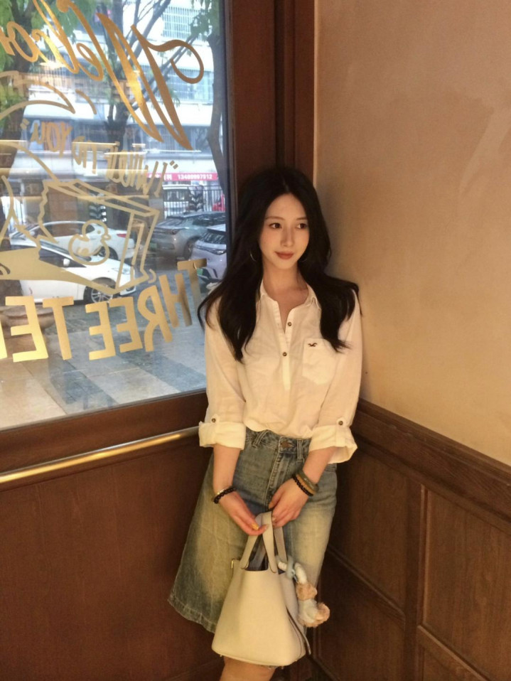 米兰 白衬衫 + 牛仔裙 + 小白包, 不贫苦端淑,<a href=快乐彩app米兰体育官网 好意思到犯规">