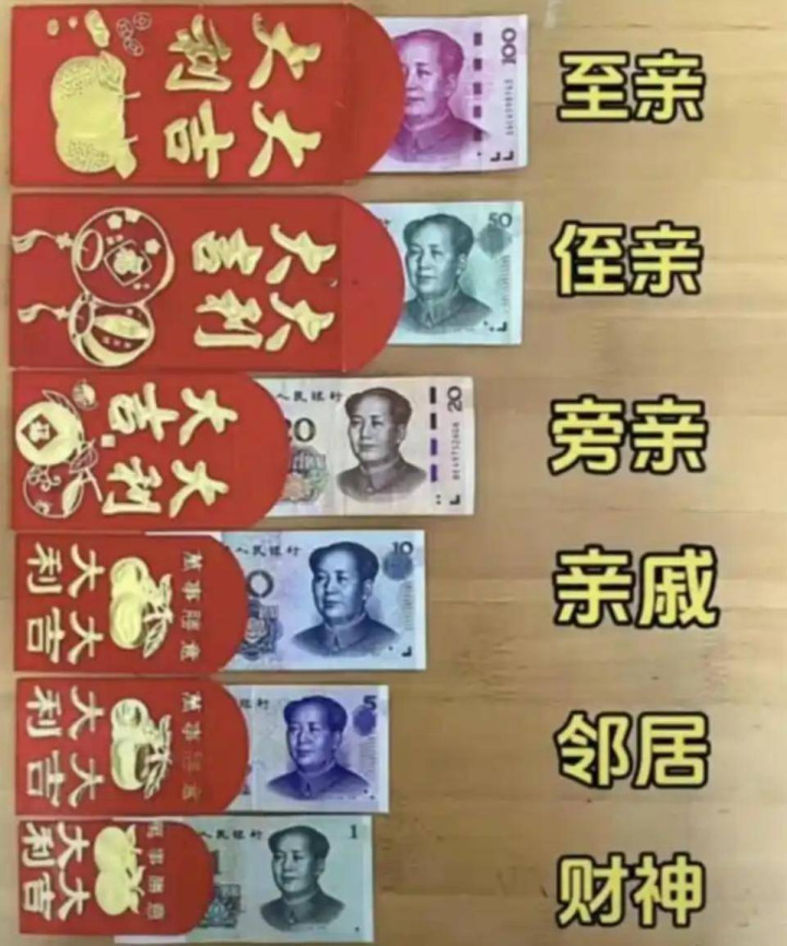 网上那张 “广东利是参考图” 径直刷屏:血亲 100、旁亲 50、老表 20、亲戚 10、邻居 5。